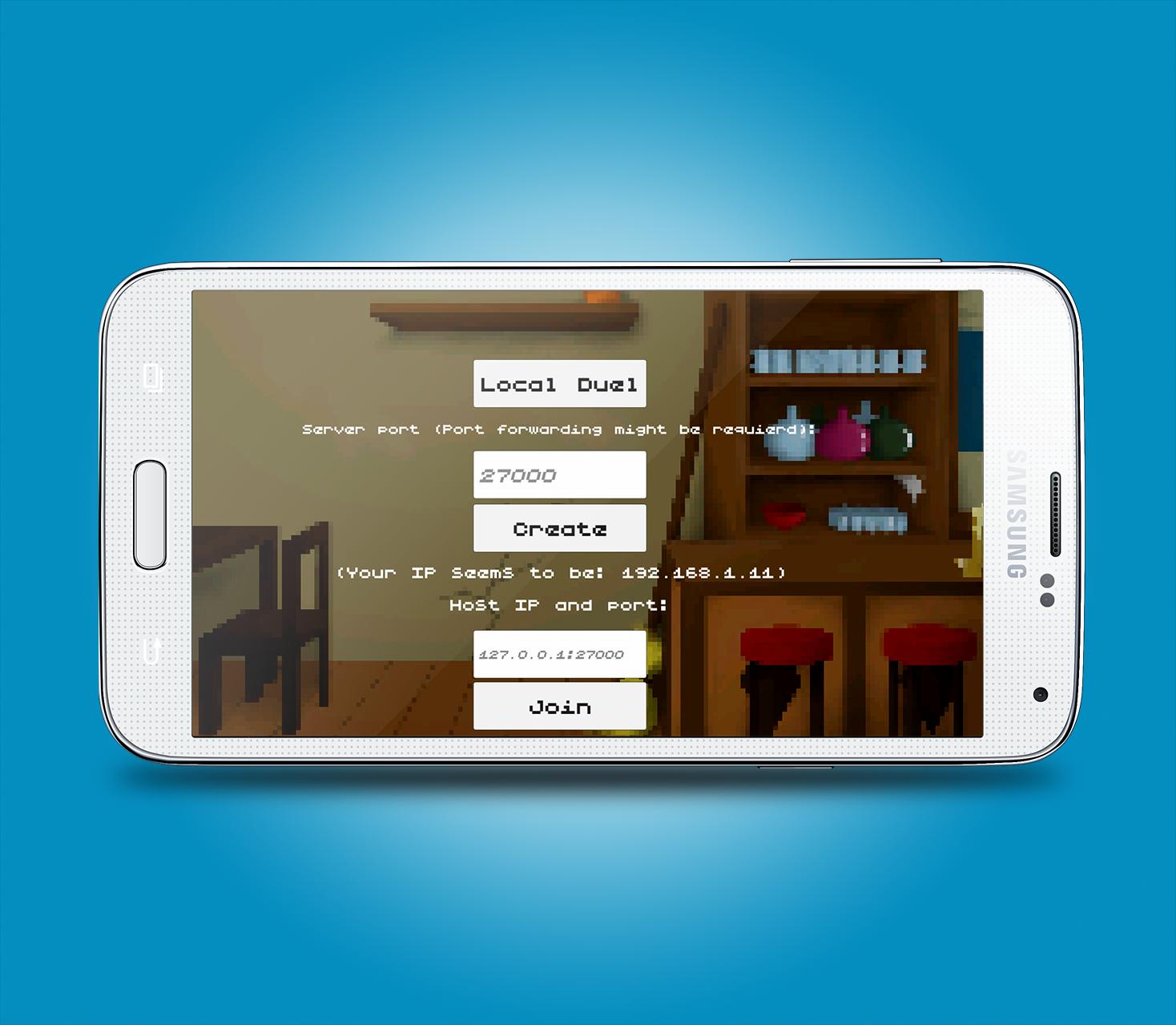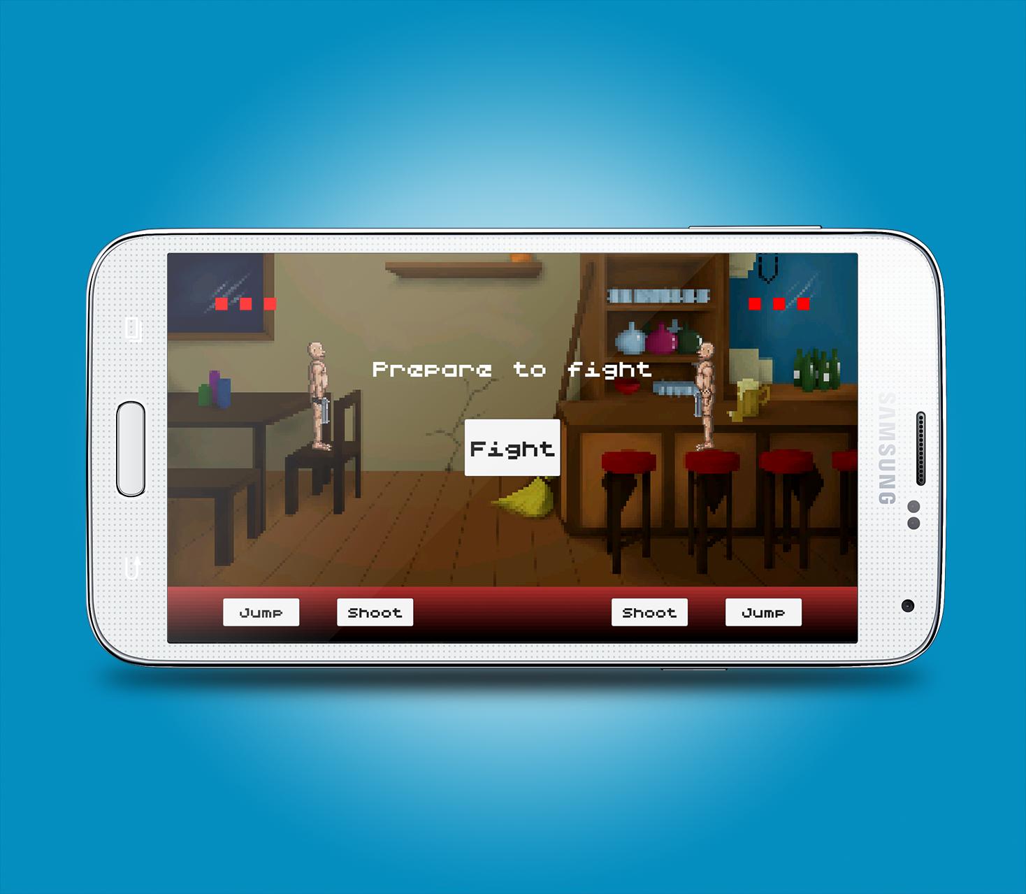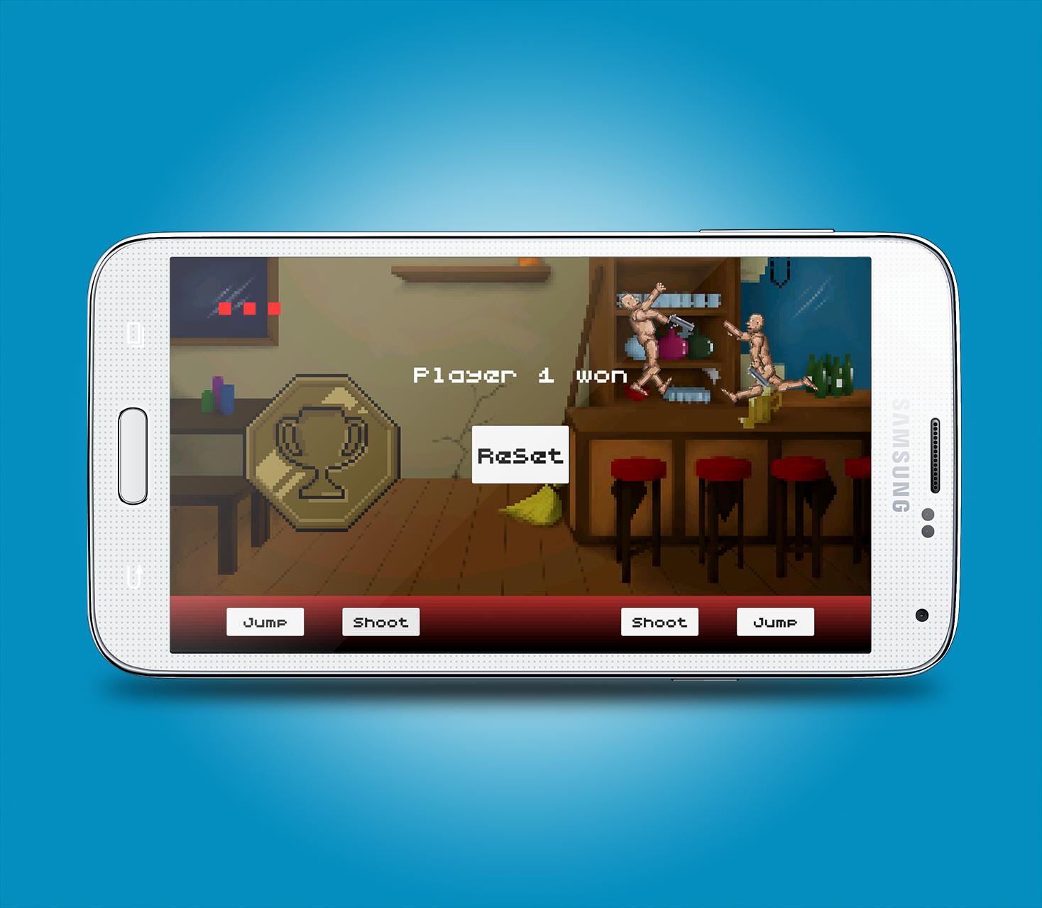 Retro graphics 1v1 ragdoll shooter game with local play and multiplayer.