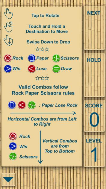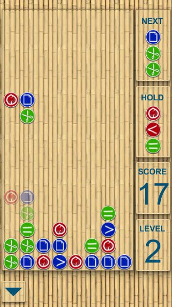 RPtriS is a fun and exciting new game that brings two great game concepts together! It’s like the Russian themed game with falling blocks and Rock, Paper, Scissors to be Exact! In this game, the falling blocks receive one of six symbols : rock, paper, scissors, greater, less, equal. To play you beat the adjoining blocks using the rules of Rock Paper Scissors. This fun, challenging, and highly addictive brain teasing geometric game is great for all-ages and gamer styles! Do you even RPtriS?