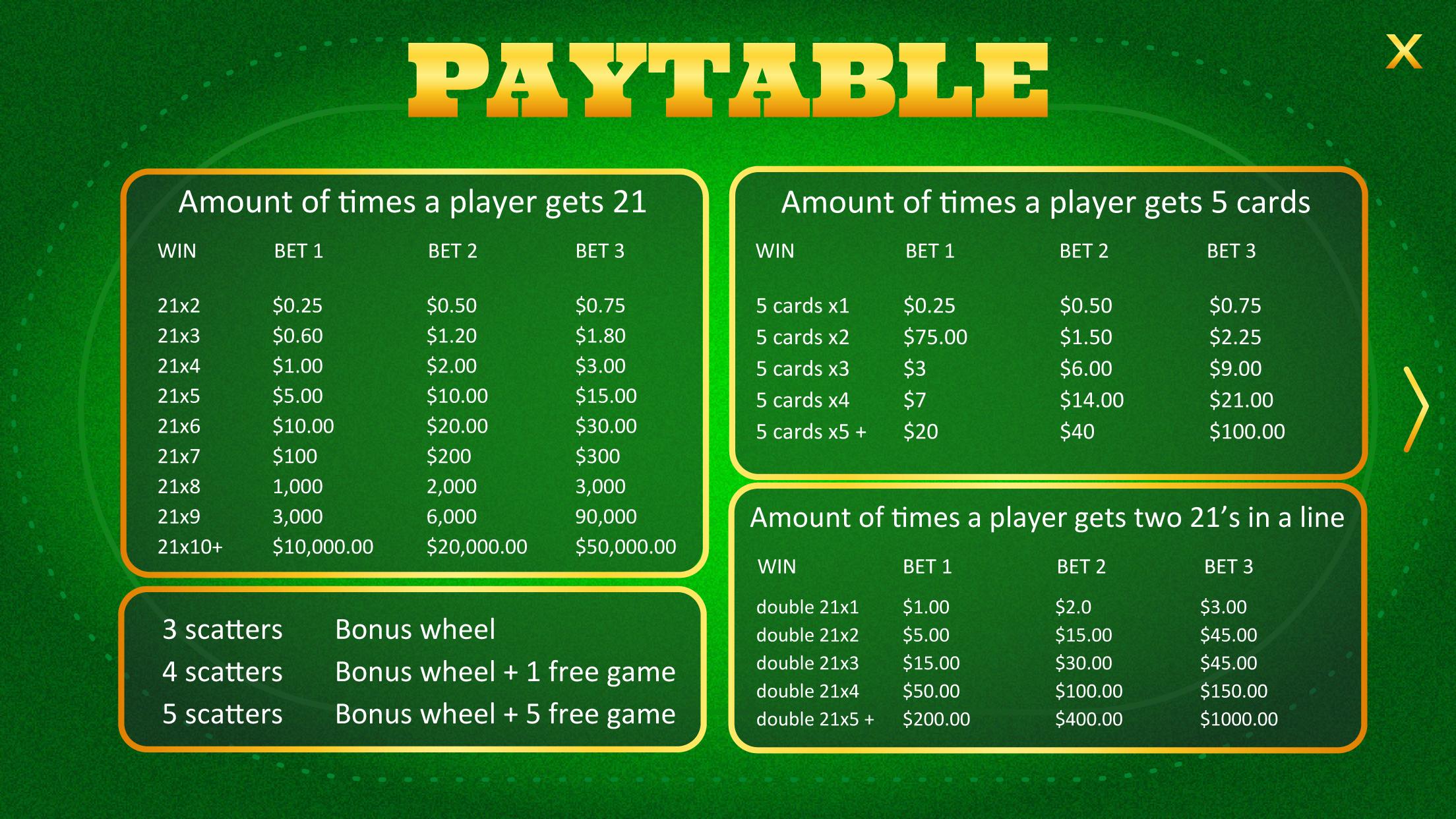 Чем больше раз вы получаете 21 в слоте, тем больше вы выигрываете.