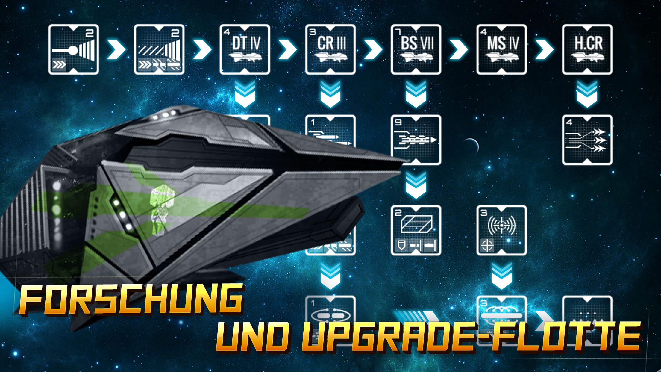 • Umfassende Anpassungsmöglichkeiten für deine intergalaktische Raumschiff-Flotte! Erforsche neue Waffen, Alien-Technologien, Kampfformationen und Trons um die ultimative Streitmacht aufzubauen!