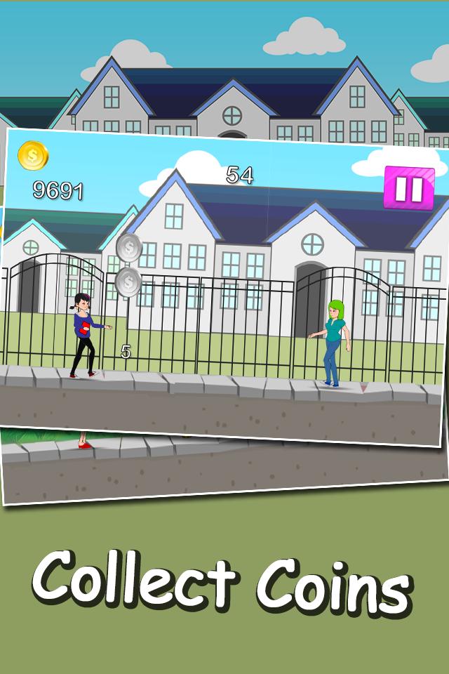 Нажмите внизу справа от экрана, чтобы снимать, влево, чтобы прыгнуть. Соберите монеты, чтобы разблокировать персонажи и уровни.