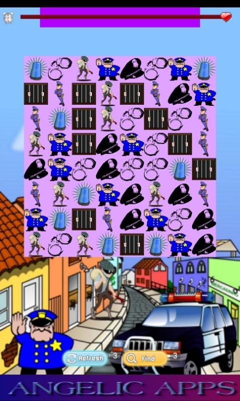 В этой игре есть некоторая помощь, когда вы пытаетесь соответствовать своим полицейским и грабителям карт - вы можете нажимать обновление до 3 раза, и это будет смешивать карты, чтобы попытаться облегчить поиск совпадений.