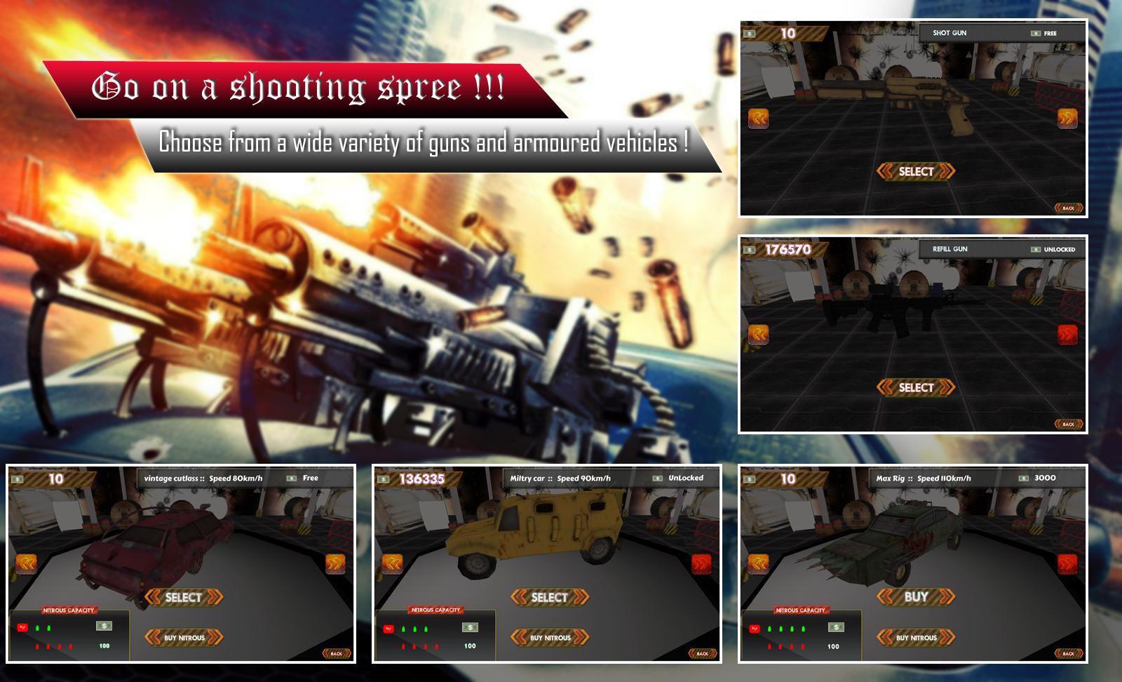 - Неограниченное действие без покупки приложения. Соберите деньги, когда вы убиваете зомби и разблокируете свой любимый автомобиль и оружие.