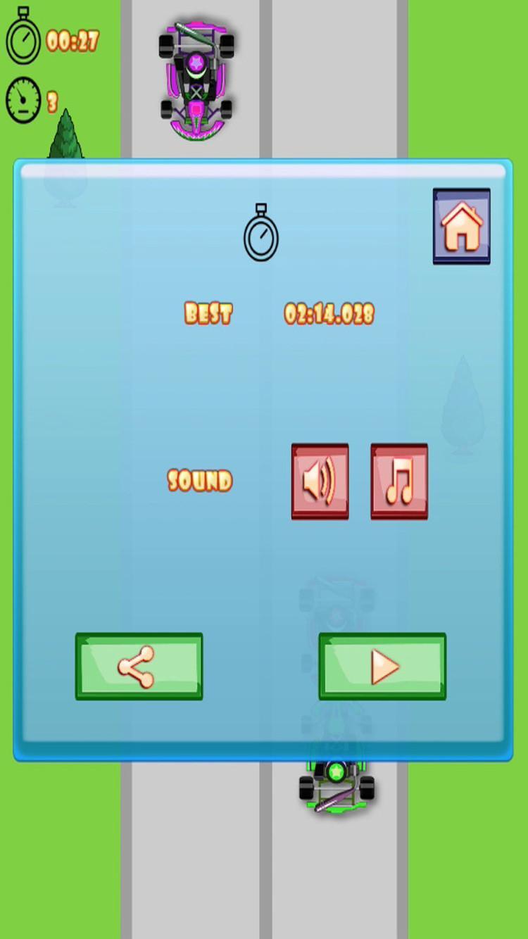 Отличные времена реакции отделяют победителей от проигравших в картинных гонках. Чемпион Kart Racers думают и действуют быстрее, чем соревнования. С Extreme Karts , Ultimate Racing Game, вы можете проверить свои навыки вождения до максимума. Начните свой картинг и Dodge Atingmest Karts, когда вы переходите на более высокие и более высокие передачи! Отличное время реакции позволяет вам продолжать ездить дольше и быстрее. Extreme Karts забивает ваше вождение, когда вы можете остаться на трассе.