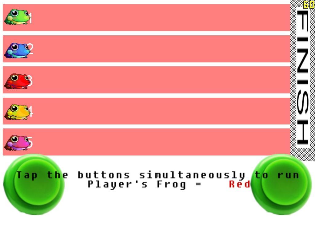 Выберите лягушку и нажмите на 2 кнопки последовательно, чтобы она запустила, сначала достигните конца, чтобы выиграть Надеюсь, вам понравится обновление :)