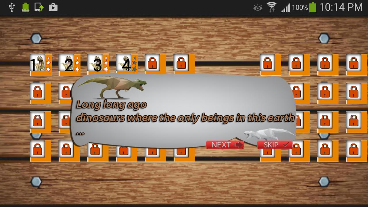 Попробуйте найти скрытые динозавры как можно быстрее, чтобы получить 3 звезды и 50 монет.