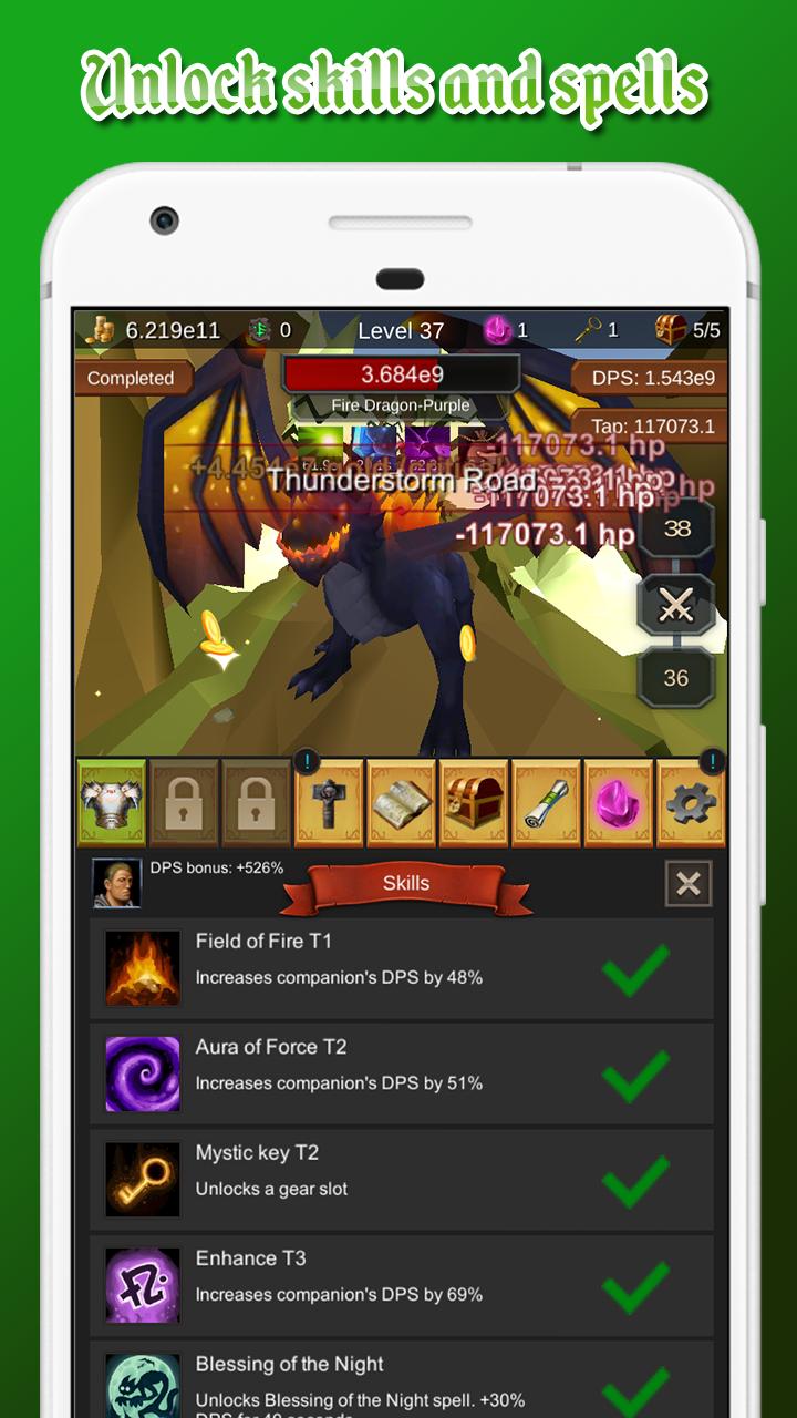 ★ Выровняйте своих компаньонов, чтобы разблокировать заклинания и получить различные преимущества, такие как увеличение DPS, повреждение TAP и падение золота.
