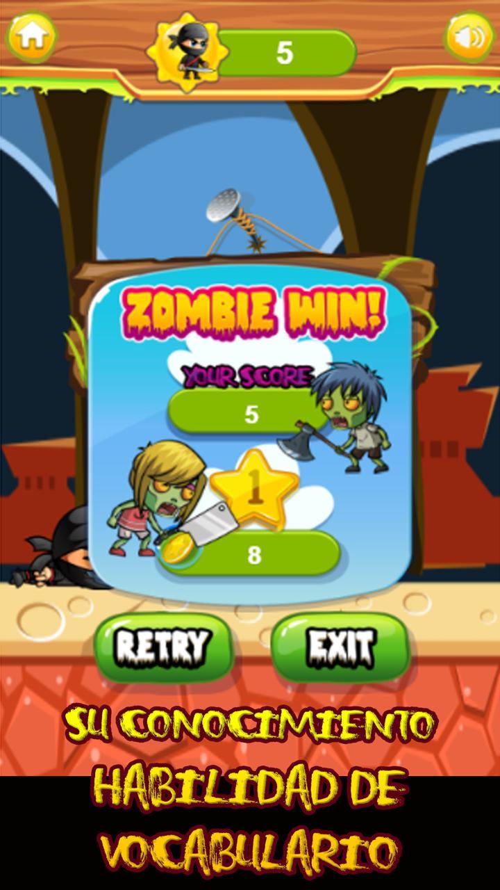 Ninja vs Zombies vocabulary game is a fun and specially game design to help you improve and learn the words vocab phrases in spanish.