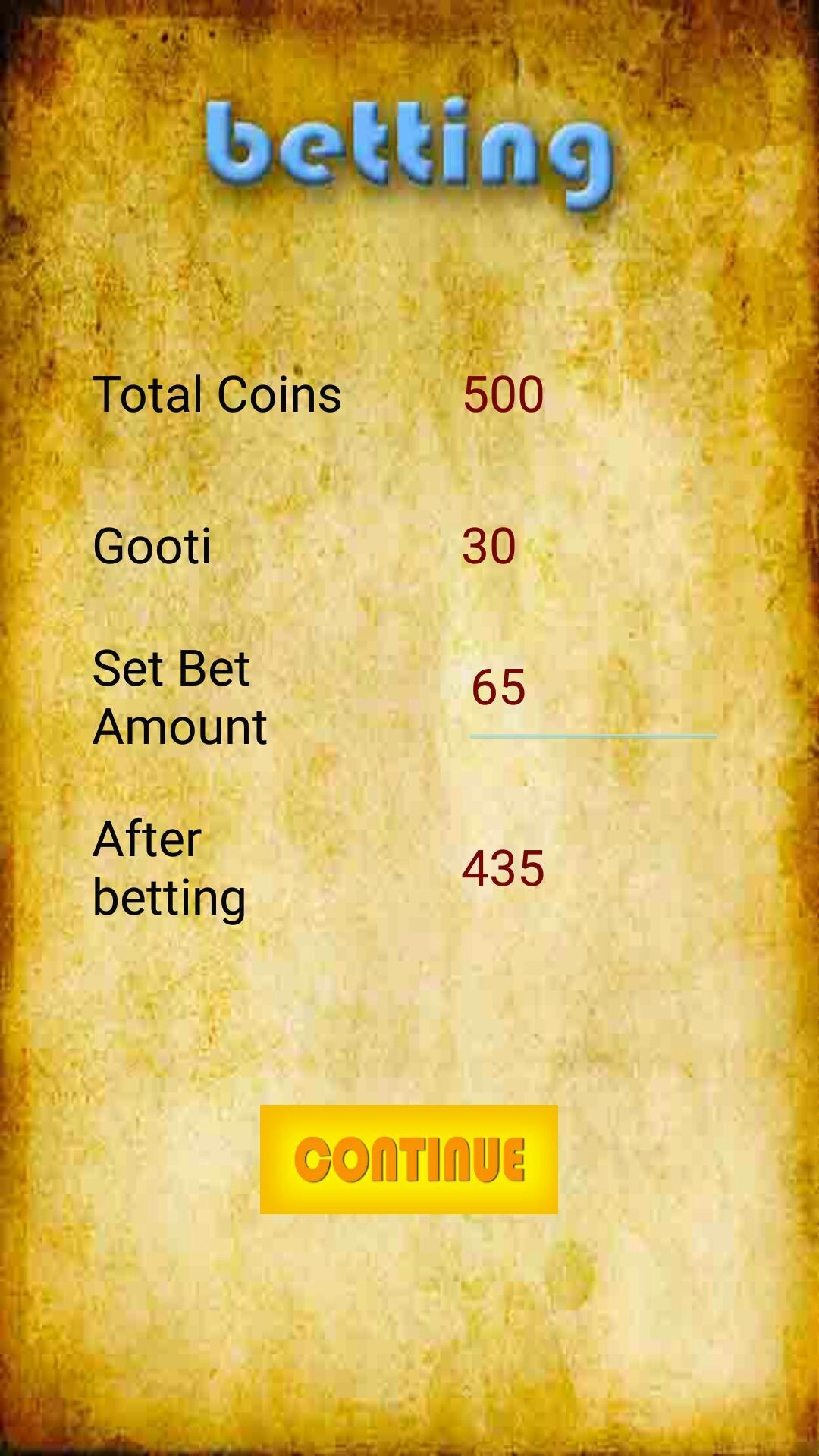 if player create its profile, then, 500 Coins and 30 Gooti will be credits in his account.