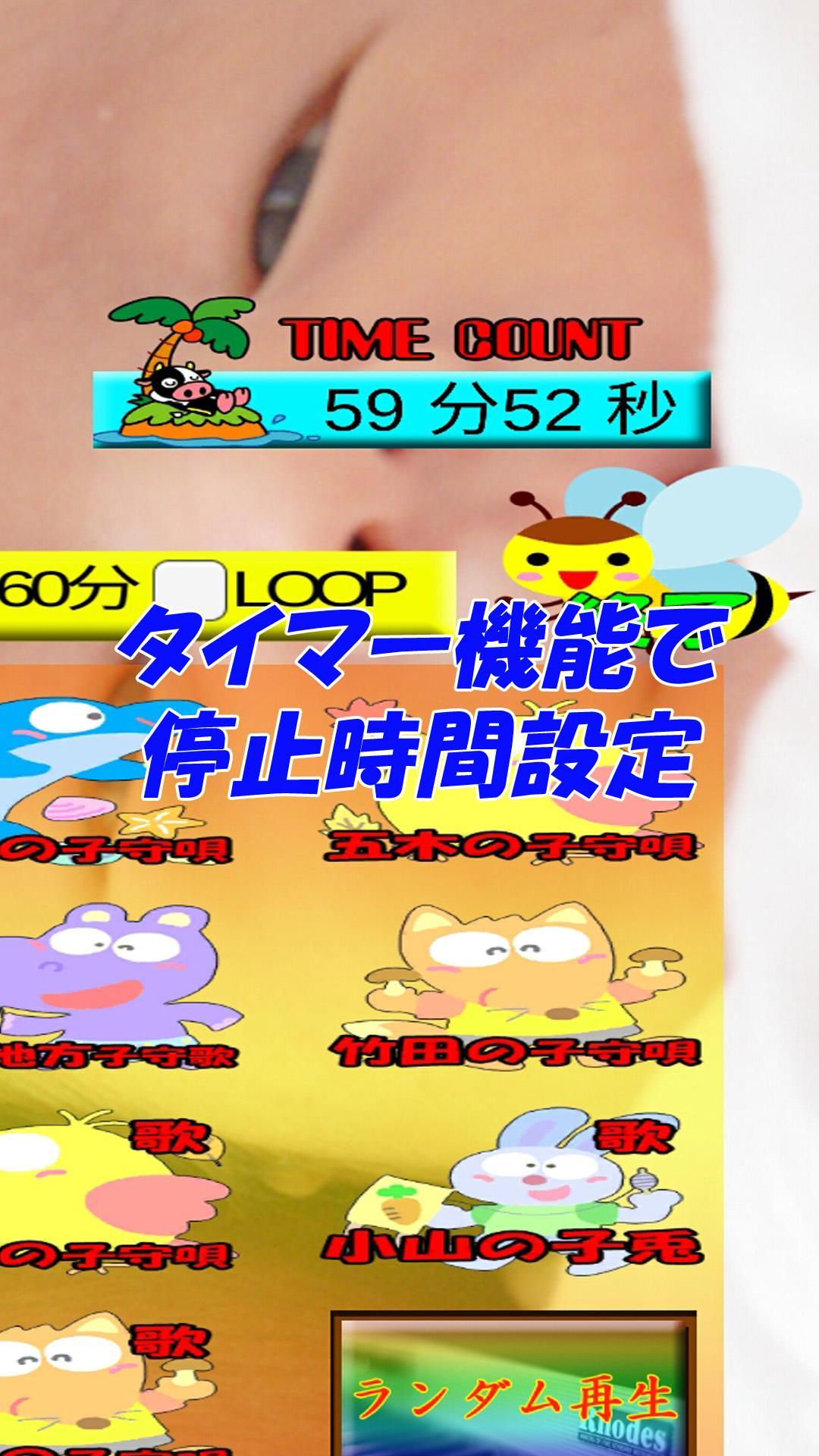 แอพเพลงสำหรับเพลงกล่อมเด็กแบบดั้งเดิมของส่วนต่าง ๆ ของญี่ปุ่นที่ซึ่งทารกนอนหลับอย่างมั่นใจ แอปพลิเคชั่นการเคลื่อนไหวที่สะดวกสบายซึ่งตัดฟังก์ชั่นพิเศษ แม่ยังร้องเพลงกล่อมเด็กในเนื้อเพลงแสดงความปลอดภัยของทารก