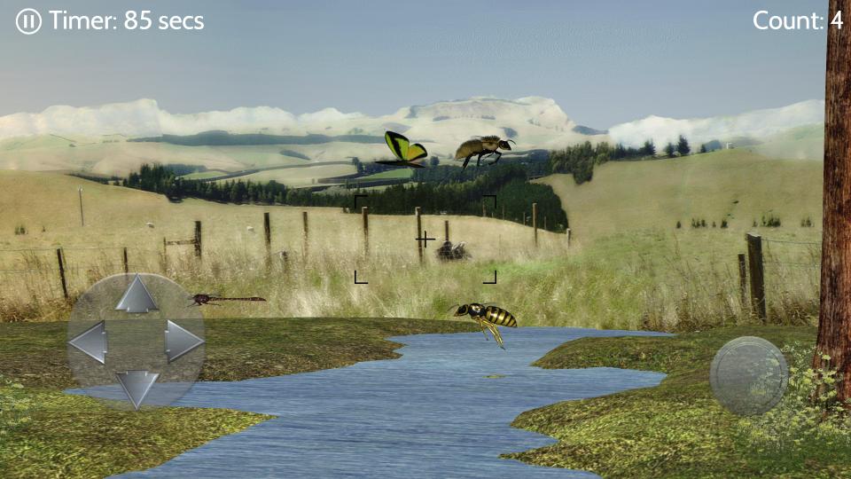 เกมนี้มีแมลงจำนวนมากสภาพแวดล้อมที่สวยงามมากมายและหลายระดับที่จะเพลิดเพลิน คุณสามารถควบคุมกล้องของคุณโดยใช้เซ็นเซอร์ตรวจจับความเคลื่อนไหวของอุปกรณ์ (accelerometer / เข็มทิศ) โดยใช้ D-Pad หรือเพียงแค่รูดบนหน้าจอ มี 3 ระดับความยากในการลอง (ง่ายปกติและยาก) คุณสามารถปรับปุ่มถ่ายภาพกล้อง (ซ้าย/ขวา) และเปิดใช้งานการสั่นสะเทือนเมื่อคุณได้รับการต่อย (ถ้ามีอยู่บนอุปกรณ์ของคุณ) เกมนี้ยังมีข้อมูลการศึกษาบางอย่างเพื่อให้คุณได้รู้จักข้อบกพร่องของคุณ!