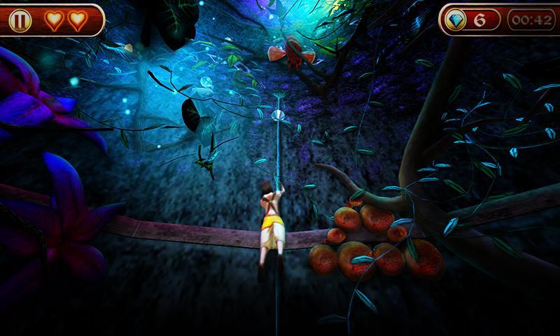 แตะและค้างไว้ครึ่งหน้าจอเพื่อเลื่อนตัวละครบนเชือกและบันได