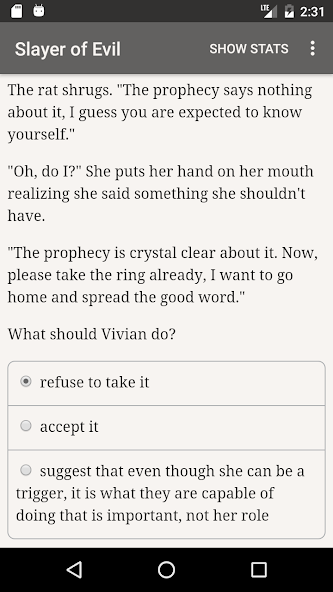 "The Slayer of Evil" is a 50,000 word interactive novel by Ivailo Daskalov, where your choices control the story. It's entirely text-based—without graphics or sound effects—and fueled by the vast, unstoppable power of your imagination.
