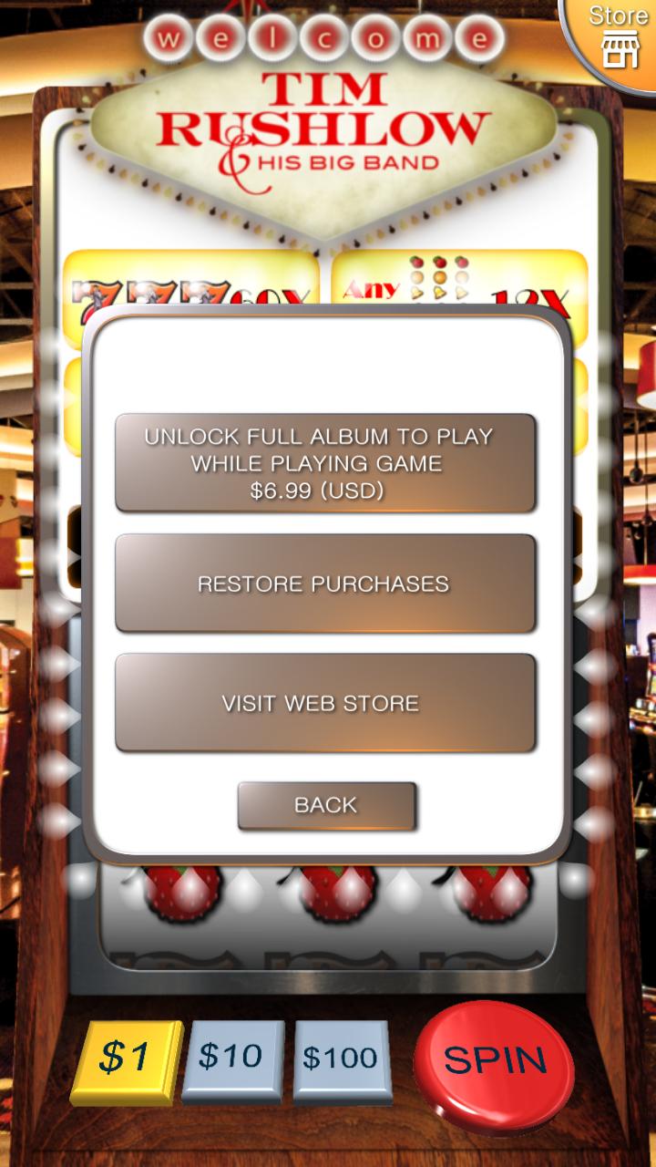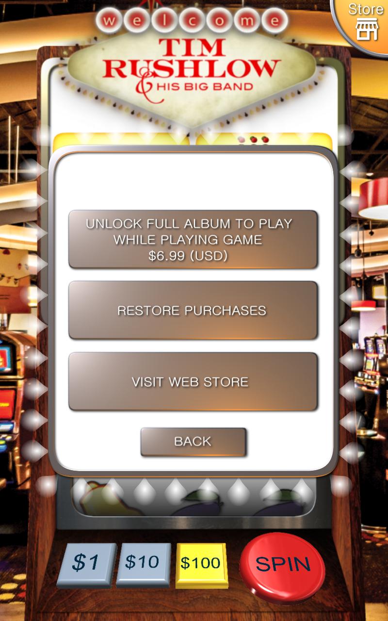 Tim Rushlow's Big Band Casino is a slot machine game like no other. While playing, you can experience the best hits of the Rat Pack era with multi Grammy nominee and lead vocalist of the acclaimed super group Little Texas, Tim Rushlow. Tim will take you on a musical journey that will transport you to the iconic music of the 50's and 60's with hits by notable artists from the American songbook. The soundtrack for this game comes from Tim's live album recorded at the Rosewall in Nashville, with the best of the best players in his orchestra.