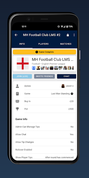 - Receive reminders before a round kicks off, for those who have forgotten to get their tip in.