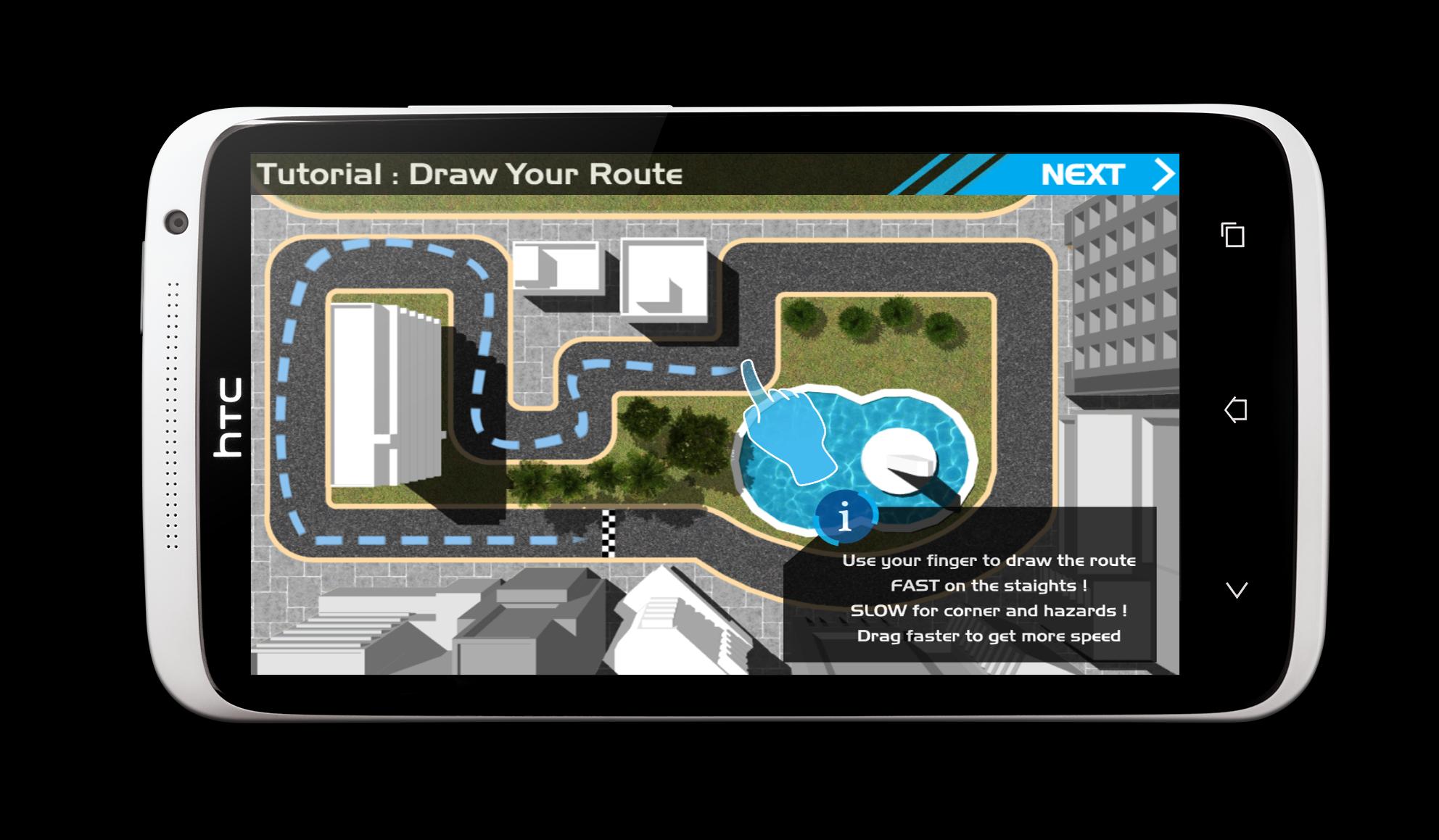 Welcome to the next generation of racing. What comes on your mind when you think about racing games? We know what rings there, a fast and furious car which you'll drive the tire out on the track. You know what we say? We say too mainstream! Now it's time to drag and draw your route over the track and let your car do the rest. The faster you'll drag, the faster the speed the car will gain. With 3 boosts that'll allow you to go faster on straights, take sharp corners and go smooth on rough areas of the track- the fun and excitement never ends.