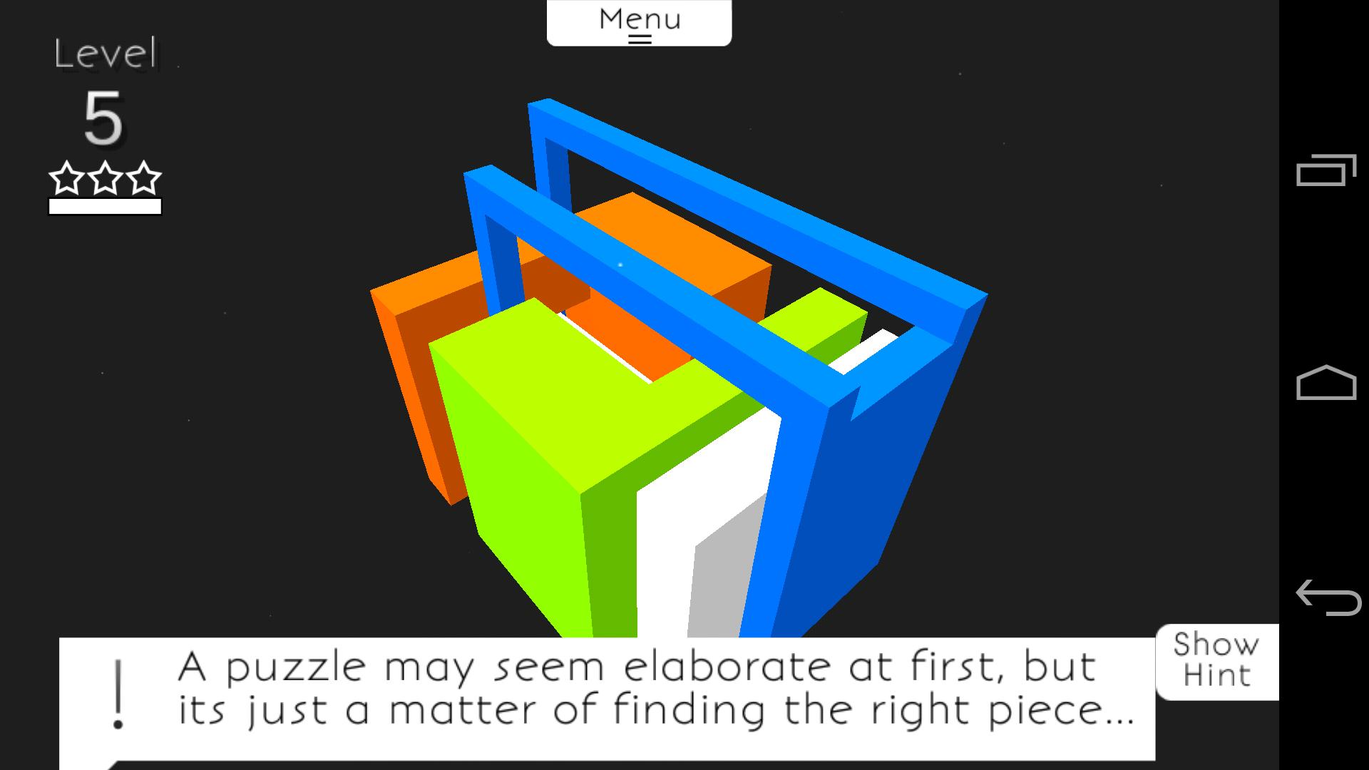 The free flow of the 360 degree camera allows you to move around the entire puzzle to judge which shapes matches the escape route so you can easily drag it out. Think of it as a reverse jigsaw puzzle, where instead of matching pieces and putting them in, you are pulling them out.