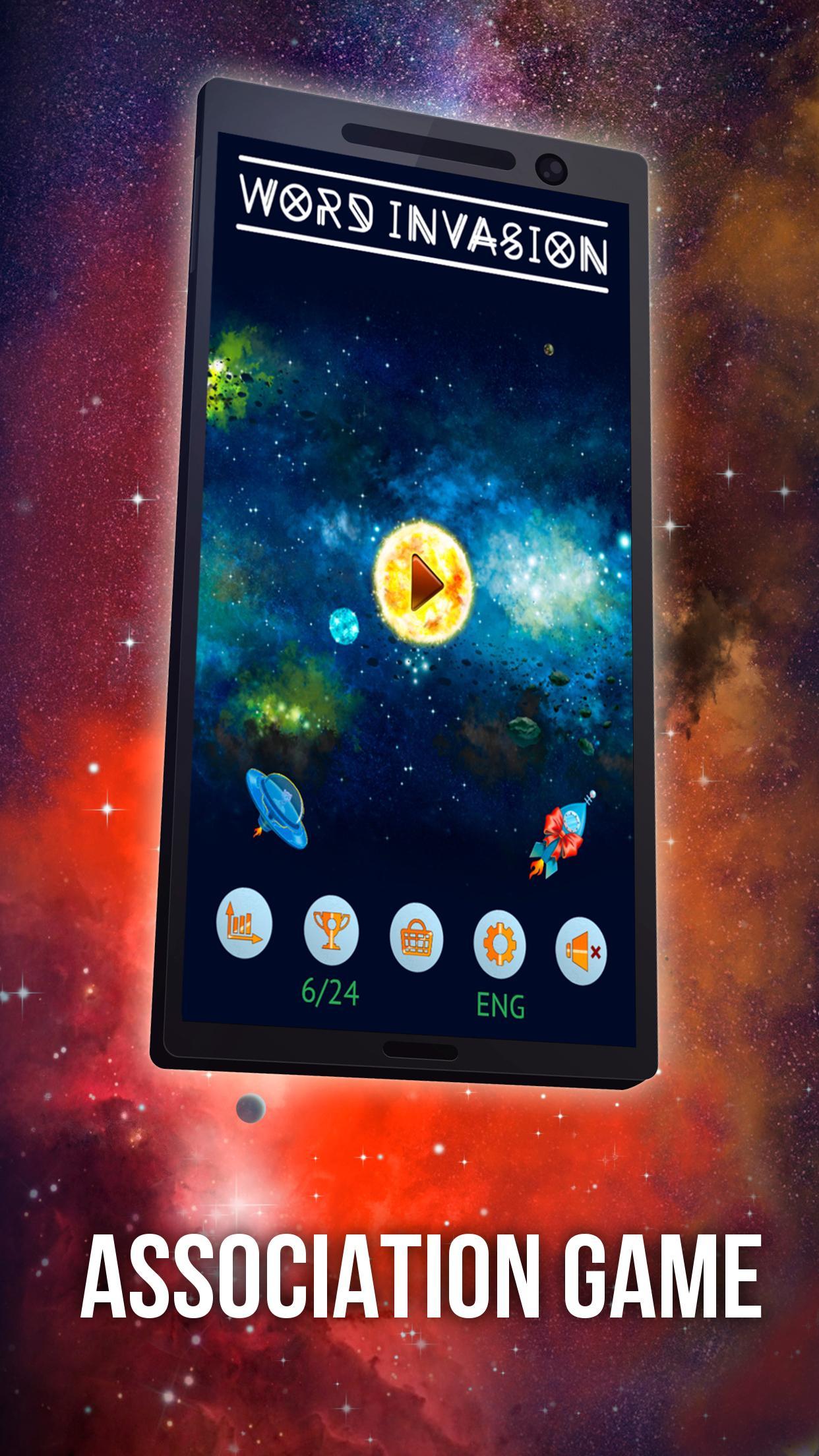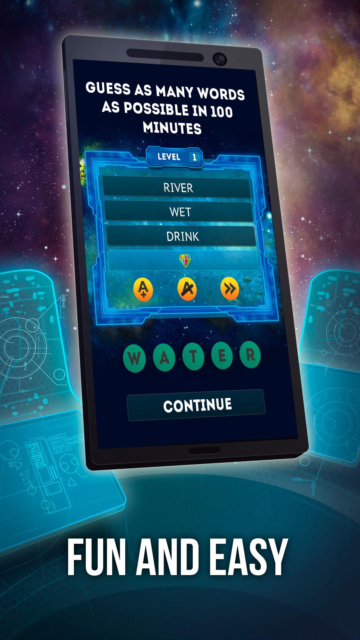 In this easy to learn and increasingly challenging game, you enter the correct noun, verb, or proper name, while the alien vessel travels through space. Each word is hinted through the revelation of up to four associated words, with additional hints available for true head scratchers. Each correctly guessed word earns you space crystals and brings the aliens closer to their destination.