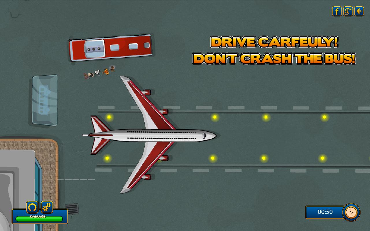 您有时可能需要从两个不同的电台带走两组旅行者。然后将它们开车到机场周围,并在飞机附近停车,等到每个人都进来,飞机起飞。机场在非常严格的时间表下运行,因此请尝试及时进行。另外,请非常小心,不要太多撞车,因为您可能会损坏它。在屏幕的底部中心,您将能够看到您的伤害栏。