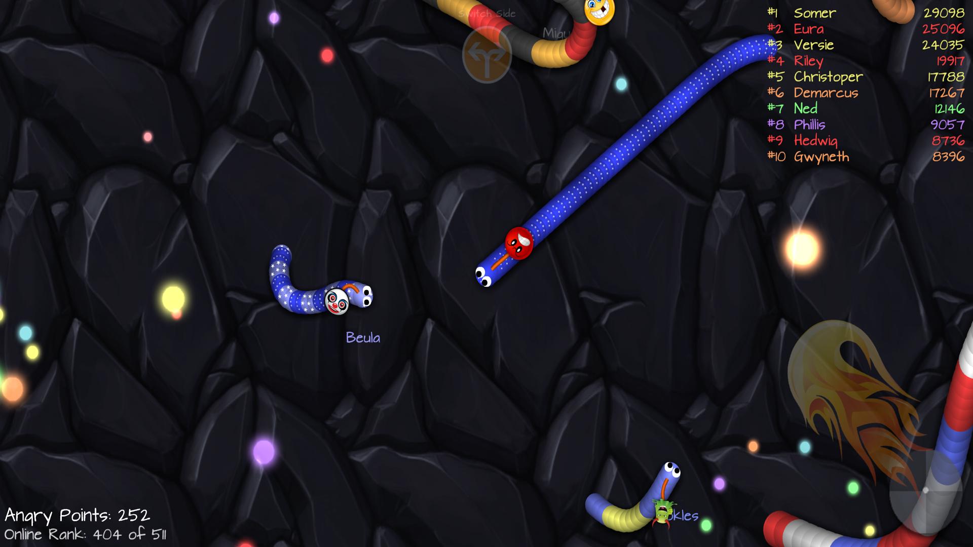 提防,如果您的头碰到另一个蛇,您可能会爆炸,所以它已经结束了。但是,如果您有不同的害虫可以遇到您,那么它们会爆炸,您可以消耗它们的碎片!
