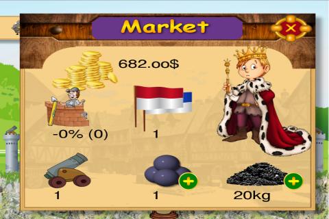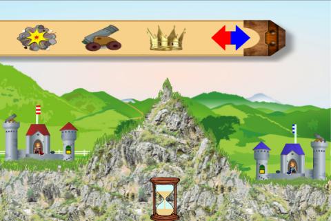 他们之间的两个城堡和一个山丘。这就是您的国王和山坡另一侧的丑陋战士的局势。删除他的城堡,否则他将删除您的城堡。用大炮拍摄,购买球和枪粉,修理您的城堡并尝试生存。