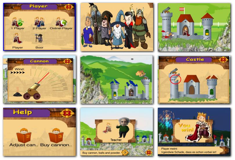 加农炮球将摧毁货物和建筑物。如果您损失了50%的结构,您将失去游戏。但是,您可以重建城堡 - 如果您有足够的钱来付工人。