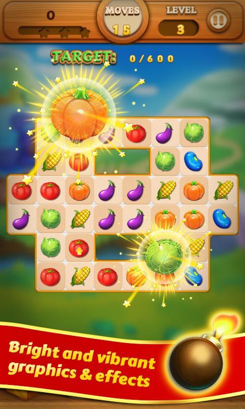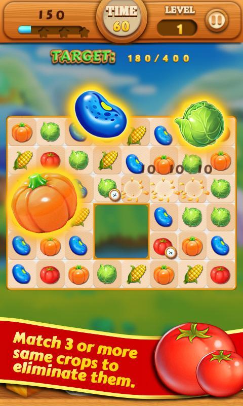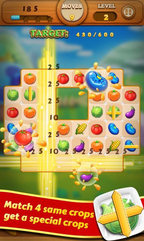 - 在一行或行中匹配4种相同的农作物,您将获得一种特殊的农作物,可以消除整行或行中的所有农作物。