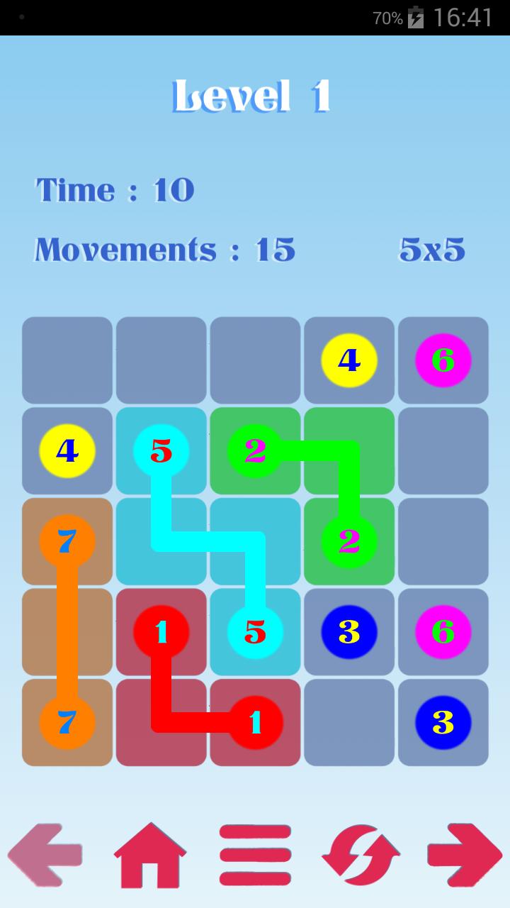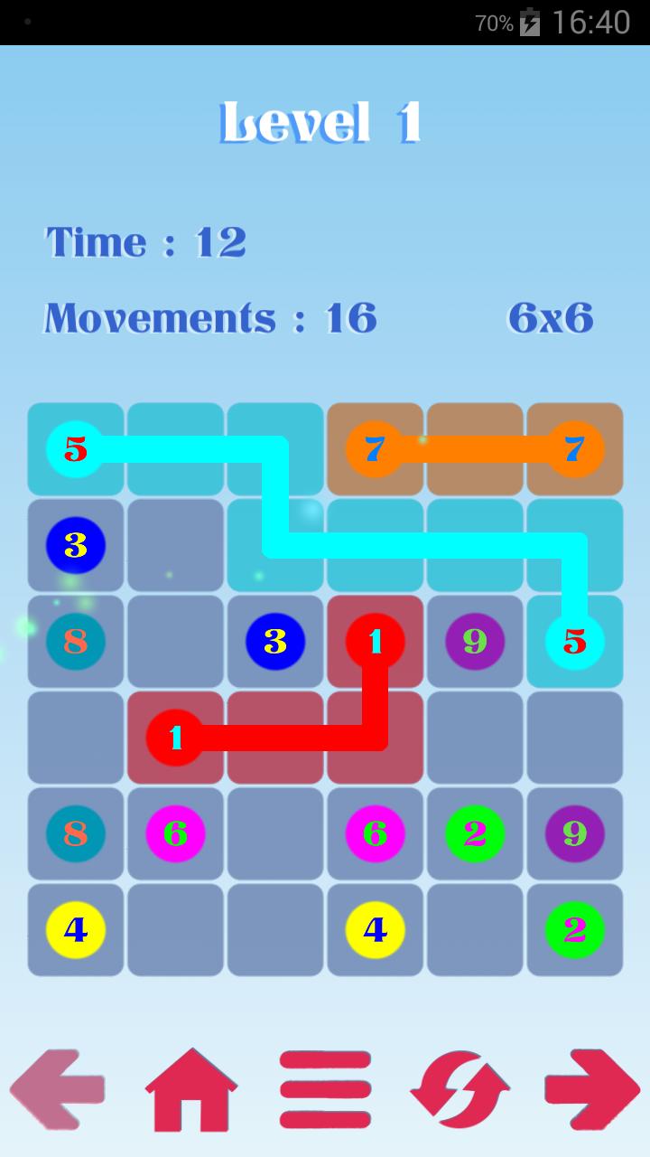 将匹配号码与管道连接以创建流线。将所有数字配对,并覆盖整个板以解决流量线中的每个难题。但是,请注意,如果管道越过或重叠,它们将破裂!