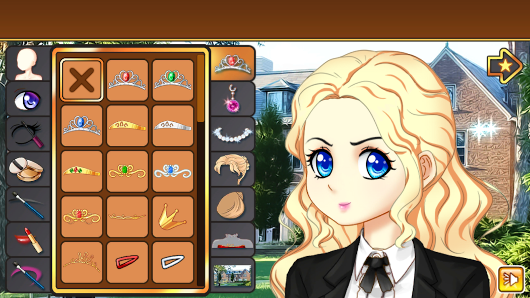 化妆你的角色。可爱的服装和珠宝配饰正在展出。