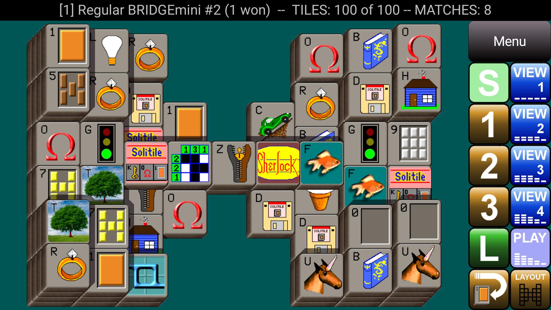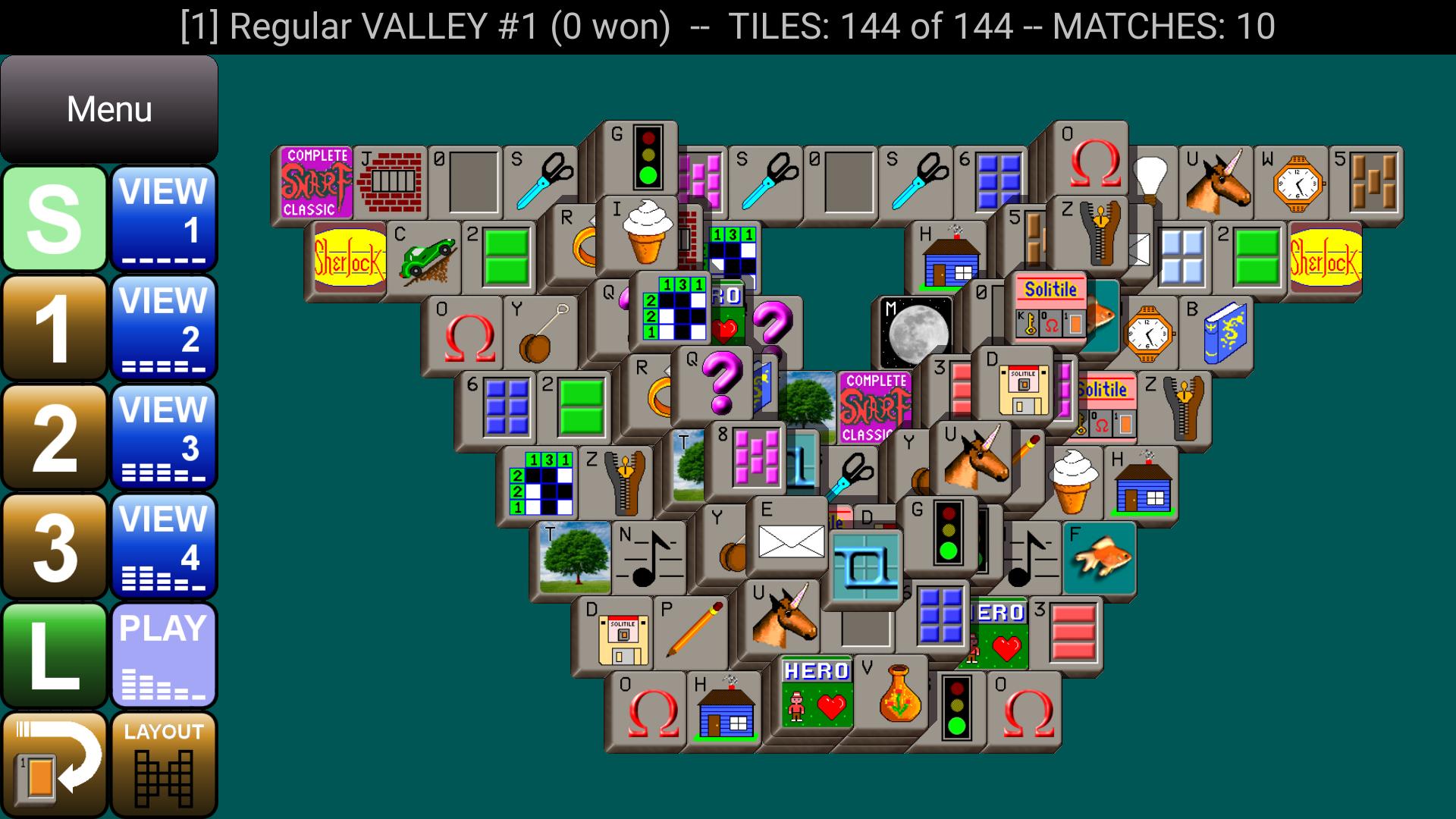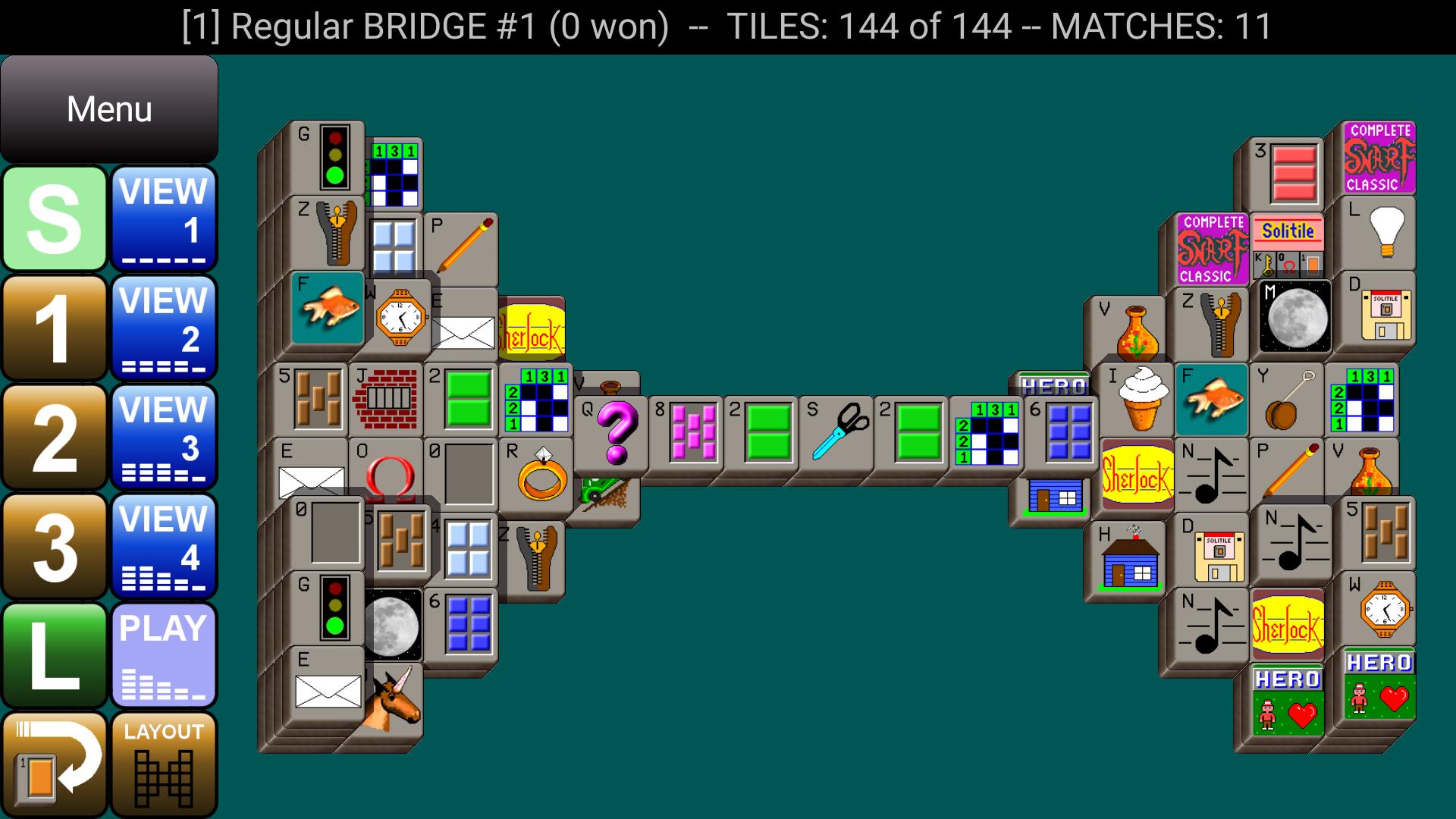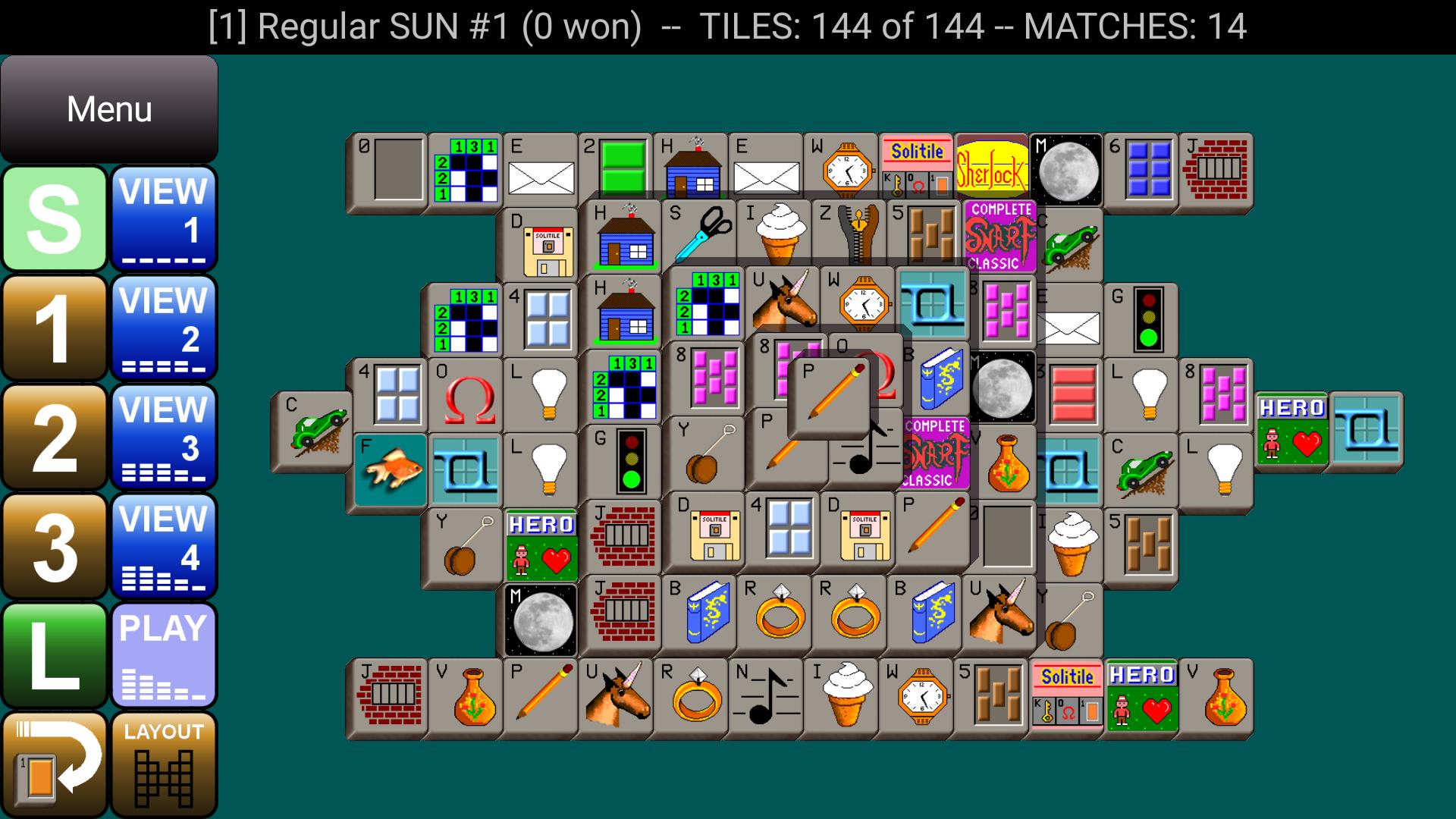 Solitile是一款使用“ Tiles”玩的纸牌游戏。游戏的目的是卸下一对匹配的瓷砖,直到所有瓷砖都被删除为止。该游戏源自几个类似的游戏,例如“上海”,“ Gunshy”和“ Mahjongg”,它们与Mah-Jong Tiles一起玩。孤子玩同一游戏,但添加了新的起始布局(包括16个)和新的瓷砖集(包括4个)。其默认的瓷砖集在瓷砖的脸上使用“西化”图片,但也可以使用三个替代瓷砖集。此版本包括每个布局中的5个“常规”难题和5'更困难的拼图,总共有160个拼图。