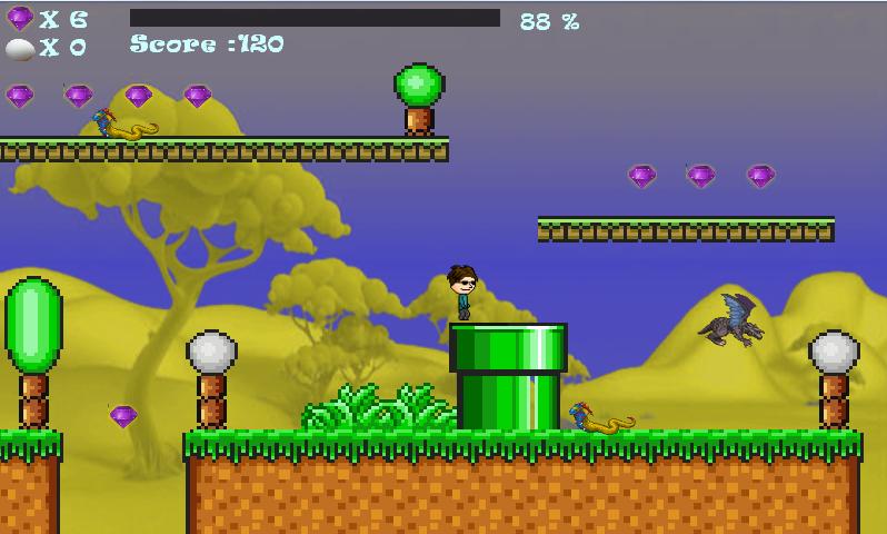 Chronicles of Pumma是一個2D Mario,就像使用Digital Wolf Studio的LibGDX框架開發的開源Android遊戲一樣。 Pumma是一個冒險的人,他在一個仙境中,必須收集越來越多的寶石和雞蛋來維持自己的健康。他必須在旅途中阻止自己擺脫有毒的蛇和可怕的龍。他必須找到鑰匙,以解鎖通往下一個水平的大門。只是慢慢去...明智...