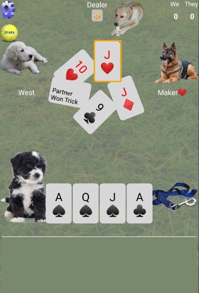 Euchre,以小狗為主題的家庭紙牌遊戲,與朋友或AI Bots By King9遊戲