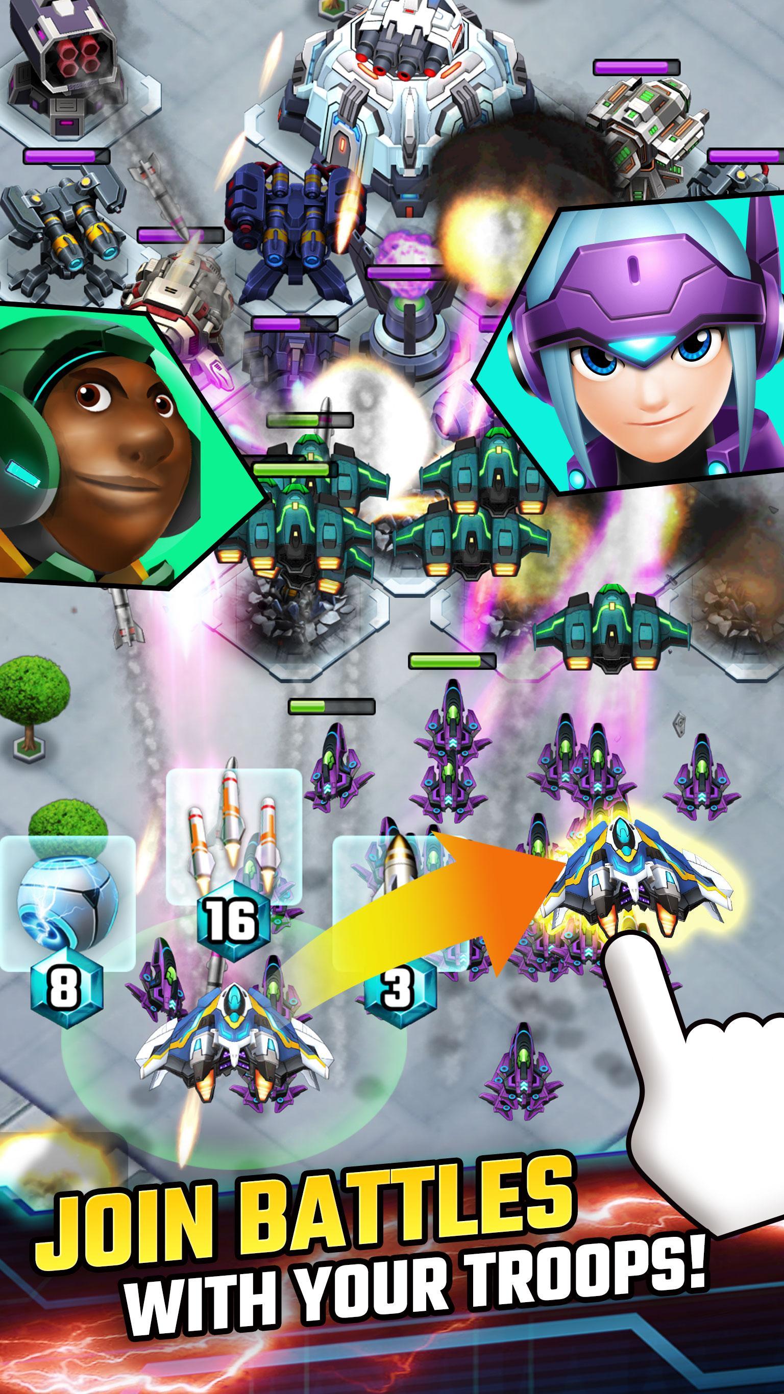 - 與您的部隊戰鬥,並在街機射手等快節奏的戰鬥中釋放毀滅性的攻擊!